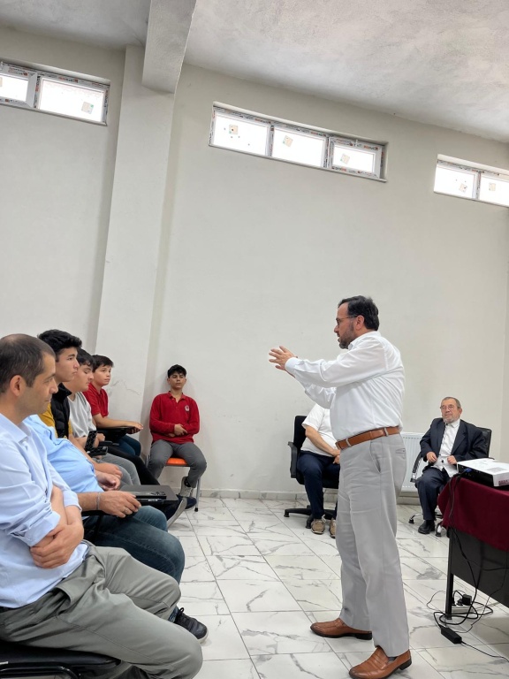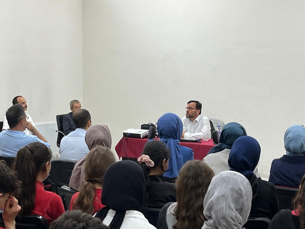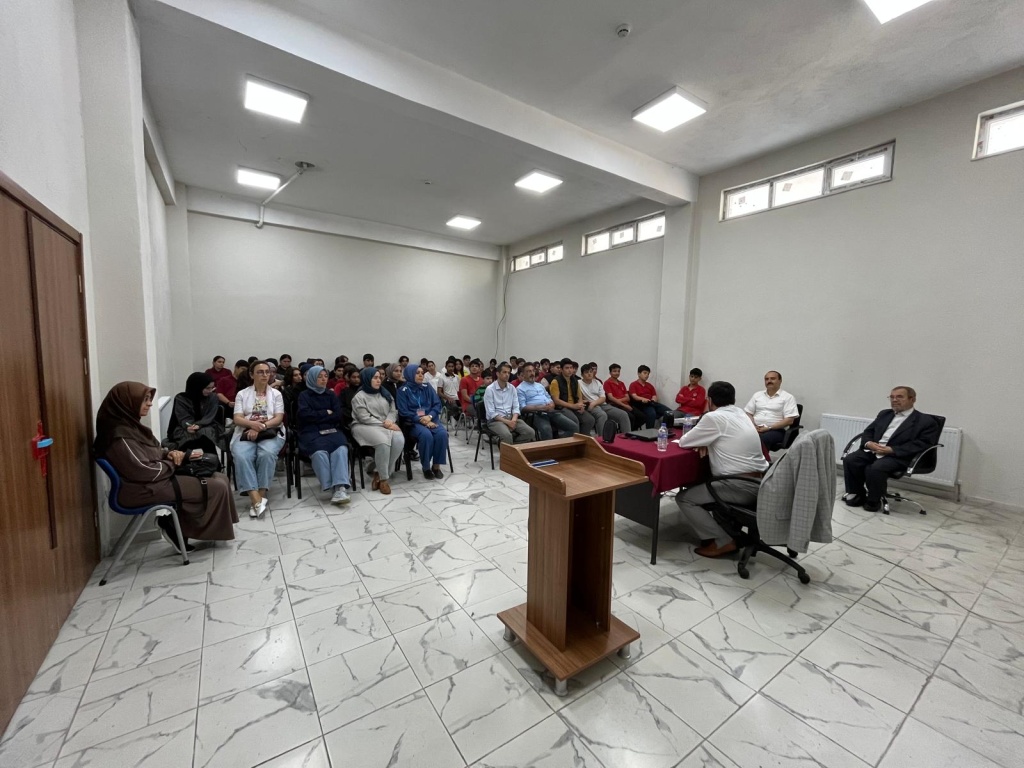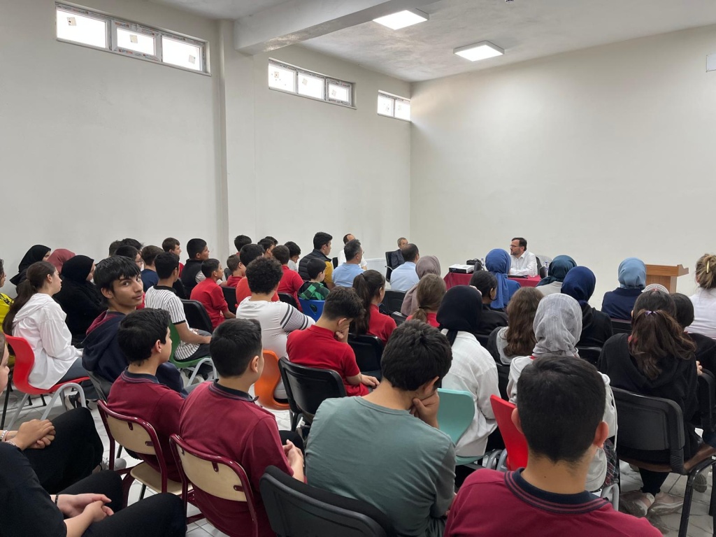 Bandırma 17 Eylül Üniversitesi Temel İslam Bilimleri Bölümü Başkanı Prof. Dr. Abdullah Hikmet ATAN; 03.06.2025 Salı günü, 14.00-15.00 saatleri arasında okulumuza gelerek hem uzmanlık alanı olan hadis bilimi, hem yaklaşan Kurban Bayramı'nın ortaya çıkma süreci ve Hz. İbrahim'in imanı, hem de ilahiyat fakültelerinde öğrenci olmak hakkında öğrencilerimize bilgilendirme semineri yapmıştır. Samimi bir dille ve anlaşılır bir şekilde yapılan semineri büyük bir dikkatle dinleyen öğrenciler, anlatı sonunda merak ettiklerini sorarak İlahiyat Fakültesi'nde öğrenci olmaya dair bilgilenme fırsatı yakalamışlardır. Seminerin sonunda öğrencilerimizin mesleki ve sosyal gelişimlerine yaptığı katkılardan dolayı Sayın ATAN'a okul müdürümüz Cem AYDIN tarafından plaket sunumu yapılarak teşekkür edilmiştir.